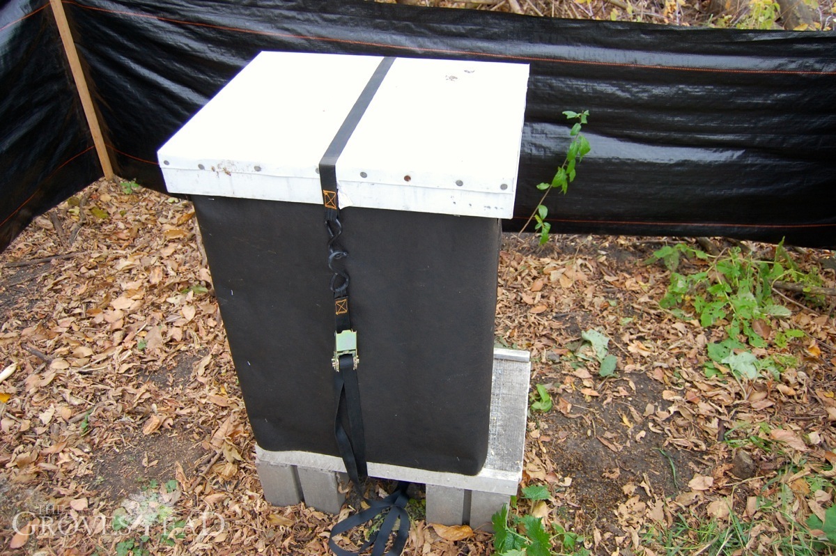 Finally, I strapped the lid on with a tie down. This adds extra stability for strong winter winds. For some beekeepers, this is how they keep the bears out.